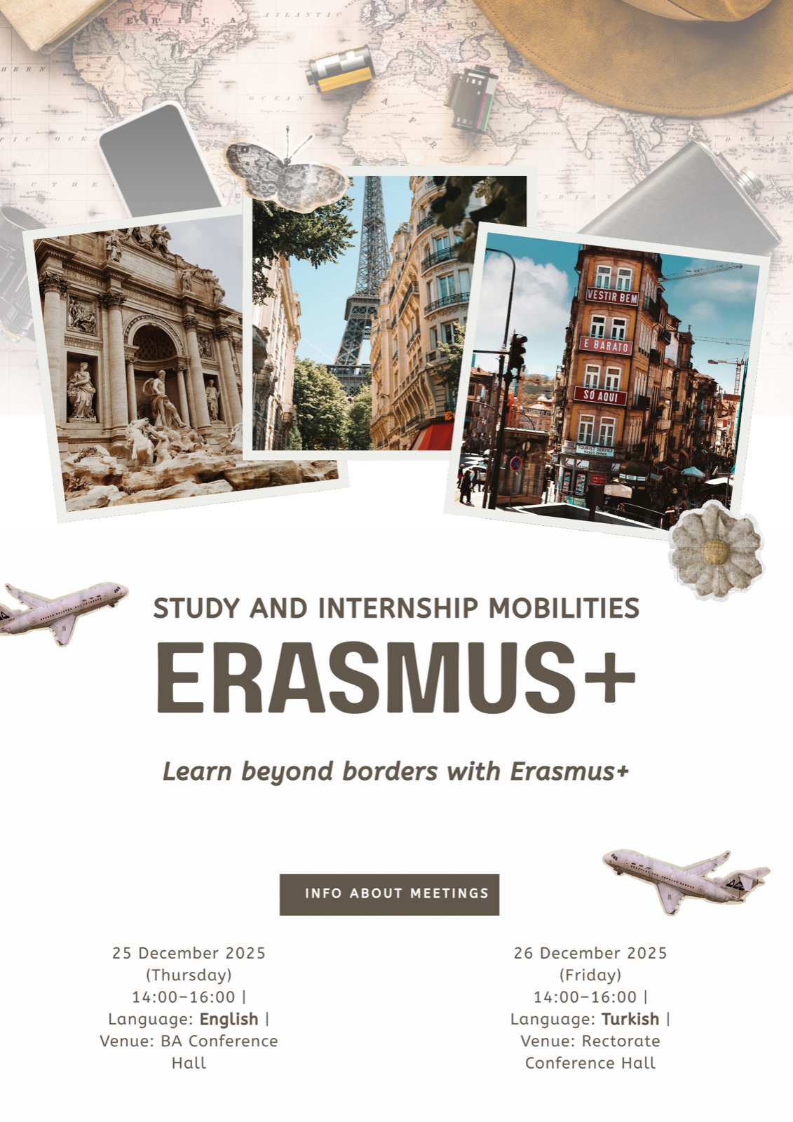 The Erasmus Office of Abdullah Gül University will organize Erasmus+ Information Meetings to provide detailed information about Erasmus programmes.